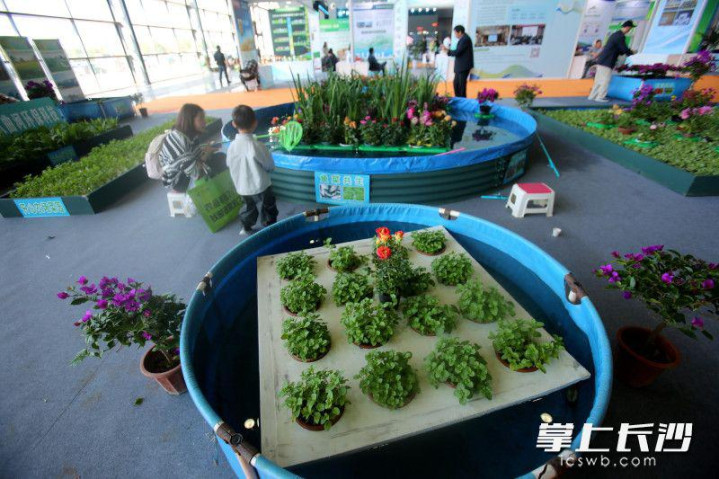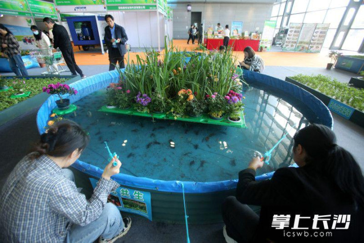 “平时只见过地里种的菜、土里种的花,还是第一次见水里长的,孩子特别好奇,还问能不能在家里阳台放个水盆种花种菜。”来自雨花区的李女士带着孩子仔细观察着水上蔬菜和花草的根系,并拿上钓杆钓起了在水里游弋的小龙虾。不少农业从业者也驻足交流。“我们那里有不少鱼塘,这种模式既能利用水面空间,又能净化水质,太值得借鉴了。”从广东赶来参展的王先生说。